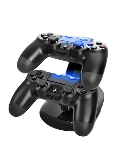 - <li>Ideal for saving your place to store your controllers in the charger when you're not playing<li>2 built-in micro usb adapter ports, allows you to securely store and charge up 2 ps4 controllers simultaneously<li>Internal wiring administers a safe and consistent current output<li>The design is specifically tailored to the PlayStation 4 to match the look of your favorite console<li>Two controllers can be charged without any additional cables and the front LEDs show you their current charging status</br></br><b><u>Features</b></u></br></br><li>Colour Name : Black<li>Model Number : GAME319