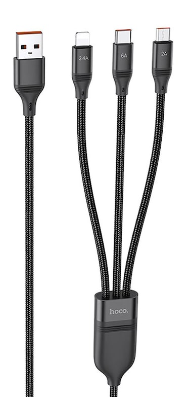 Hoco. 3-In-1 - U104 Ultra - 6A Charging Data Sync Cable Black