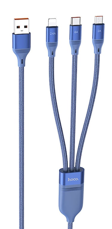 Hoco. 3-In-1 - U104 Ultra - 6A Charging Data Sync Cable Blue