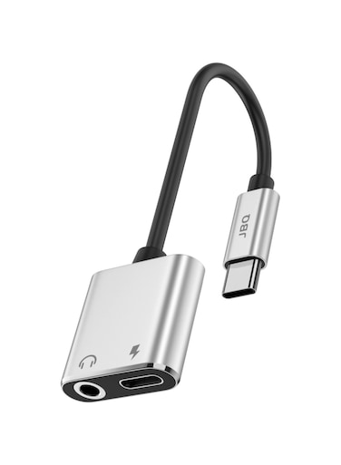 JBQ TC-35 Type-C To 3.5mm Audio Adapter + Type-C Port, Charge, Audio, Voice And Control, Grey
