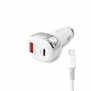 mpBLBERRI BLB-C101 30W PD Car Charger, Micro-USB Cable White
