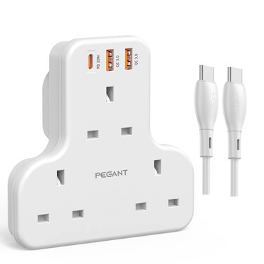 • Multi Plug Extension Power Adapter with USB-C to USB-C Cable 2x USB-A and 20W USB-C Ports 3 Way Wall Charger Electrical Extender Outlet Adaptor USB-C to USB-C Cable
