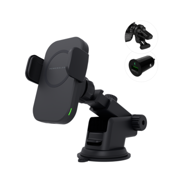 Powerology Fast-Wireless Universal Magsafe Mount 7.5W/15W Automatic Grip And Touch Release - Air Vent & QC3.0 Car Charger Included