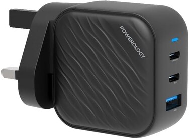 Powerology Ultimate 65W Dual PD GaN Charger, Quick Charge 3.0, Compatible for Laptops, Compact Design, Enhanced GaN Technology (UK 3 PIN)
