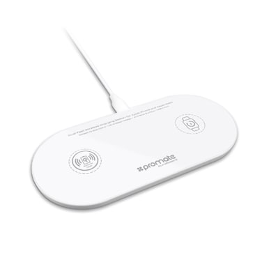 Promate Qi Wireless Charger Pad, 10W Ultra-Slim Dual Qi Charging station with Anti-Slip Surface, USB Type-C™ Input, Over Charging Protection and USB Charging Port for Apple Watch and Qi-Enabled Smartphones, AuraBase-2 White