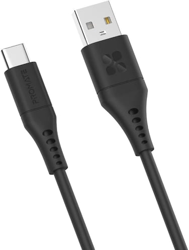 Promate USB to USB-C Cable, Durable Silicone Type-C Cable with 3A Fast Charging, 480 Mbps Data Sync, 1.2m Anti-Tangle Wire and 25000+ Long Bend Lifespan for Galaxy S22, iPad Air, PowerLink-AC120 Black