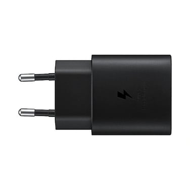 - <p> Ultra-fast charger (25 W) <p> Give all devices the necessary energy. With a charger that delivers up to 25 W of power, you will always have an Ultra-Quick charger. For best results, use a charger with an official Samsung charging cable. <p>Specifications:<p> Compatible models: 25W ultra fast charge: compatible with Galaxy S10 5G, A80, A70 and subsequent compatible models <p> Features: Ultra-Fast Charge max. 25 W, PD 3.0 PPS max. 25W Interface: USB Type C Package Included: Wall Charger, Type C Cable, Quick Start Guide <p> Cable length: 1 m Dimensions (WxHxD): 474 x 781 x 262 mm Weight: 50 g <p> energy Input voltage: 100-240 V Output voltage (Max, normal charging): 5 V Output Voltage (Max, Fast Charge): PDO: 9V/PPS: 3.3-5.9V or 3.3-11.0V Output Current (Max, Normal Charge): 3 A <p>