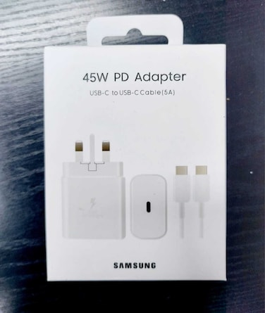 Samsung Travel Adapter 45W 3 pin with USB Type-C to Type-C Cable Super Fast Charging (White)