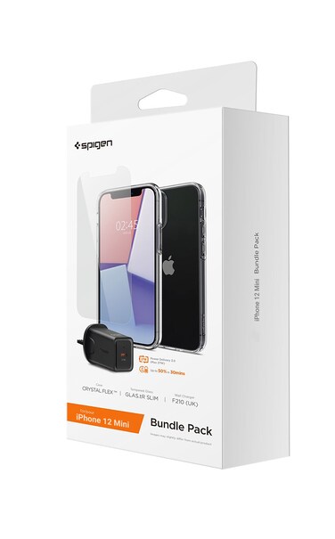 - Spigen iPh5.4(20) WallChargerBundlePack (Crystal Case + Screen Protector + F210 USB Wall Charger Black)<p>Compatibility: iPhone 12 mini