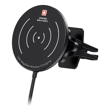 The Swiss Military MagSafe Wireless Car Charger 15W Black is a sleek and efficient car charger that is compatible with MagSafe technology.