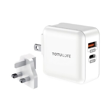 The TotuLife 18W PD Plus QC 3.0 Dual USB Bright Series Wall Charger in White is a powerful and convenient charging solution.