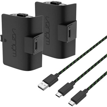 Venom High Capacity 1100 mAh Twin Rechargable Battery Packs for the Xbox Series X, Xbox Series S and Xbox One remove the need to constantly change your controller batteries with expensive disposable ones. Our handy rechargeable battery packs are made to measure to fit your Xbox Series X / Series S and Xbox One controllers. Included are relevant Battery covers (Just make sure you select the correct battery cover for your controller and click into place). Also included is a USB to USB-C braided charging cable that can charge both battery packs simultaneously. The 3 metre length cable (split at 1.5M) ensures you have full flexibility in where you charge. The battery packs can also be charged whilst placed in the controller allowing you to continue playing whilst power is restored