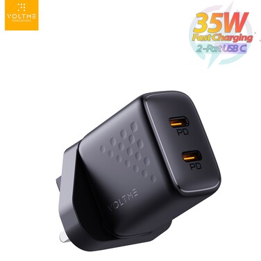 VOLTME 35W USB C Charger, GaN3 Fast Charging Type C Adapter Dual USB‑C Ports, Wall Charger Plug Compatible with iPhone 15 Plus/15 Pro/14/13/12 Series, Galaxy, Pixel 4/3, iPad/iPad mini, and More Black