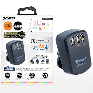 Xpower - WC3Q3 Smart Travel Quick Charger 7.8A QC 3.0 USB 2.4A Fast charge with Travel adapters