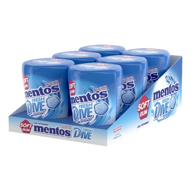 Mentos Fresh Dive Sugarfree Peppermint Flavour Cool Soft Gum 44 Gum, 2g Pack of 6