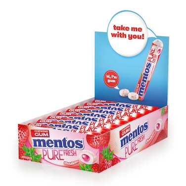 Mentos Pure Fresh Strawberry Flavour Chewing Gum, 15.75g Pack of 16