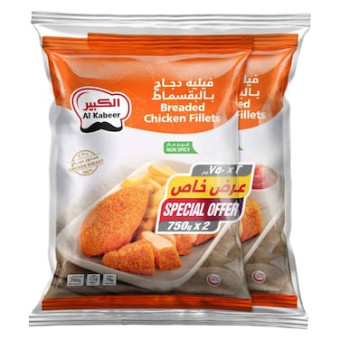 Al Kabeer Breaded Chicken Fillets Non-Spicy 750g Pack of 2