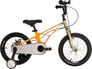 Introducing the Mogoo Horizon 16" Lightweight Magnesium Kids Bike ? a perfect blend of innovation, safety, and style for your young rider. Crafted with meticulous attention to detail, this bike offers a smooth and exhilarating ride kids and parents will love. The Horizon bike features a unique frame style, setting it apart with innovation and visual appeal. The seamless construction ensures a sturdy foundation for safe riding, while the absence of traditional weld marks gives it a sleek look. Responsive disc brakes prioritize safety, giving your child reliable stopping power. Speed becomes thrilling, whether cruising the driveway or exploring the neighborhood. The adjustable seat grows with your child, providing a comfortable fit as they grow. Training wheels aid balance and confidence for an easy transition to unassisted riding. The Horizon bike's captivating two-tone gradient paint finish sets new standards in aesthetics. Colors blend and shift, creating an eye-catching effect that turns heads. Gift your child an extraordinary cycling experience with the Mogoo Horizon 16" Lightweight Magnesium Kids Bike. Its innovative design and advanced features ensure countless hours of joyous riding and unforgettable memories.