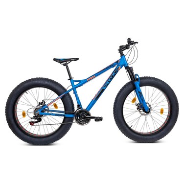 - QUALITY: Vaux Joggers Fat tyre cycle has a durable 17" 6061 aluminum alloy frame with sporty water stickers. It comes with a Lock-in and Lockout front suspension fork with 80mm travel that offers smooth ride on rough terrains as well. The lock-out feature makes the suspension rigid and hence makes the ride smoother and easier to accelerate on flatter roads. It has rust free single wall alloy rims which have 26x4.0inch nylon tyres mounted on it SPECIAL FEATURES: The Vaux Joggers 26T fat tyre bicycle comes with a 21 speed Shimano tourney gear. It has TZ500 front and rear derailleurs and EF500 Shifters which offer smooth and easy pedaling on steep slopes as well. COMFORT: The Big big tyre cycle for men comes with the strong and cushioned seat with Quick Release that gives you the perfect comfort and riding position, and the handlebar gives you the perfect grip which keeps you safe and the cycle under your control. The Vaux Joogers Fat Tyre Bicycle is comfortable for Men with an age group of 15+ years. Ideal for cyclists with a height of 5ft to 6ft 3inch. SAFETY: The powerful mechanical Disc Brakes gives you the perfect stopping at any unexpected situation. Vaux always recommends our valuable customers to WEAR HELMET WHILE RIDING.
