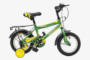 This bicycle has a sturdy frame that adds to its longevity and durability. The ultimate pick for your little children encouraging your children to keep active and develop their coordination and balance is a great way to keep them healthy. Children are great mimics, If they see that you have an active lifestyle with regular exercise, they will follow your footsteps as they get older.Heavy-duty welded steel frame Adjustable seat post Robust side stand Rubber handgrips for better handling and comfortable steering Padded seat for a comfortable ride Chainguard prevents clothes from getting caught while riding Rear Carrier for added practicality. Bicycle Specification: Frame: Steel frame with training wheels Fork: Steel Tires: 12″ x 2.25″ Rims: Alloy Brakes: Caliper Brakes Handlebar: Bent-type MTB Frame Size: 9.5 inches Weight: 8.3 kg