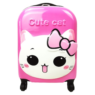 Reflection 4 Wheel Hard Casing Cute Cat Printed Luggage Trolley Pink 41cm