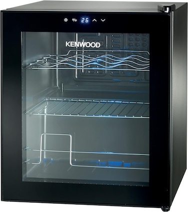 Kenwood Beverage Cooler 12 Bottles Wine Cooler Refrigerator with Double Glass Door, Blue Light, Smart Temperature Control BCM12.000BK Black