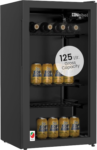 - <p><li>Spacious Storage: With a generous 125-liter gross capacity and 85-liter net capacity, the Nobel Bottle Chiller NBC125RH provides ample space to store your favorite beverages, ensuring you never run out of chilled drinks. <p><li>Adjustable Temperature Range: Easily adjust the temperature between 5°C to 15°C to suit your preferences, ensuring your beverages are always chilled to perfection. <p><li>Energy Efficient: Utilizing R600a refrigerant, this bottle chiller is not only environmentally friendly but also energy-efficient, helping you save on energy costs while reducing your carbon footprint. <p><li>Convenient Features: The mechanical control system, LED light lamp, recessed handle, and wire shelves make accessing and organizing your drinks a breeze, adding convenience to your chilling experience. <p><li>Stable and Durable: Equipped with adjustable legs for stability on any surface and an inside condenser for enhanced cooling efficiency, the NBC125RH is built to last, ensuring your beverages stay refreshingly cold. <p><li>Versatile Usage: Whether you're hosting a party, running a bar, or simply enjoying a drink at home, the Nobel Bottle Chiller NBC125RH is the perfect companion for keeping your beverages chilled and ready to serve.