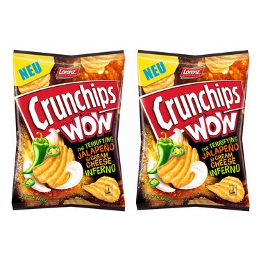 Lorenz Crunchips Wow Jalapeno and Cream Cheese Potato Snack, 80g Pack of 2