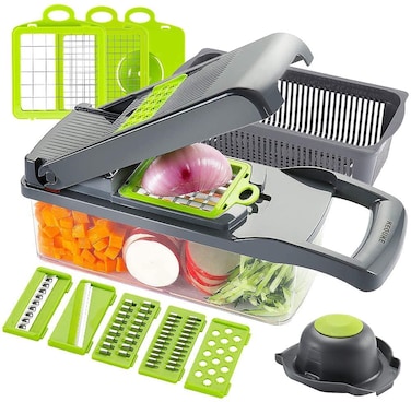 Womdee Vegetable Chopper Slicer Dicer - 12 -in -1 Onion Chopper Fruits Cutter Mandoline Slicer Food Chopper/Cutter with 7 Stainless Steel Blades, Adjustable Slicer & Dicer with Storage Container