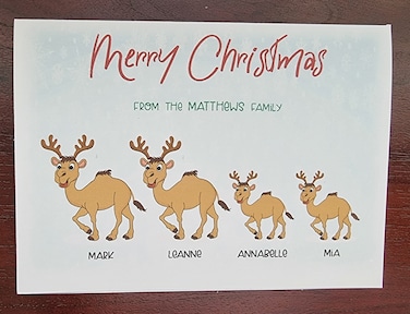 Personalized Family of Antler Camel Christmas cards.