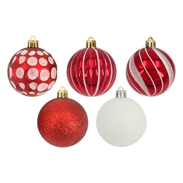 Christmas Designed Baubles Red & White 6cm 30Pcs/Box