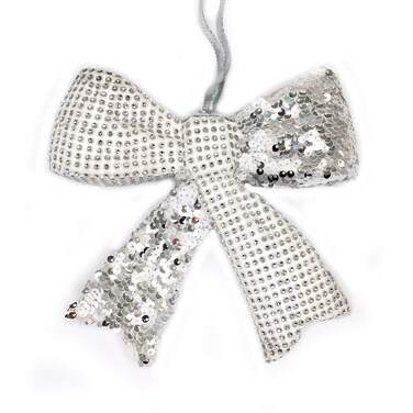 Silver Sequin Rhinestone Bow Christmas Hanging Decor 19x18cm