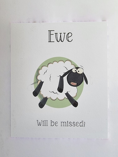Ewe will be missed cards. Perfect cards for anyone leaving a work place, school or country Inside of the card has been left blank gor your person message, or can be personalised upon request. Size 15 x15cm and includes postal envelope. AED