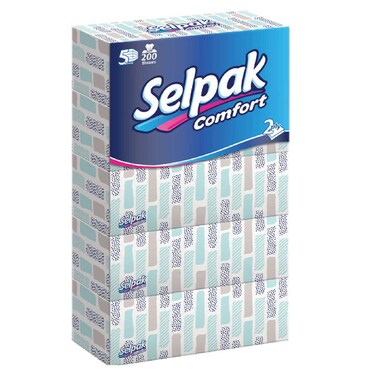 Selpak Comfort Facial Tissue - Pack of 5 Boxes (5 x 200 Sheets x 2 Ply)