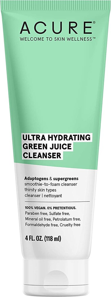 Acure Ultra Hydrating Green Juice Cleanser, 100% Vegan, Intense Moisture For Super Thirsty Skin, Supergreens & Adaptogens, Purifies, Deep Cleanses & Refreshes, 4Fl Oz