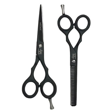 STAINLESS STEEL QUALITY MATERIAL: Magnetic ferritic structure finished excellently stainless steel, hair scissors are super-sharp, hygienic, and corrosion-free which will not break or split hair ends. SPECIALIZED GLAZE AND DESIGN: High-quality black coated haircut scissors will help resist rust and perform well in a dry and wet environment. Designed for comfort with sleek handles, finger rest, and precision blades. PACKAGE INCLUDES 1 black barber scissors 5.5 inches, 1 black haircut thinning scissor 5.5 inch EXTENSIVE PURPOSE HAIRCUT SHEAR: MICMA barber scissors set is designed for both home use and professional use for unisex. MICMA’s optimum ambition is to offer each customer superior quality practical products, a pleasant shopping experience, and satisfying customer service. Your satisfaction is our priority. MICMA HAIR CUT KIT DESERVES YOUR CHOICE PREMIUM HIGH QUALITY Made of high-quality magnetic stainless steel, sharp cutting razor edge maintains the hardness and sharpness at the desired level. ERGONOMIC DESIGN Comfortable to use the scissors shears when you are cutting hair. Fit any thumb and finger, relieve the wrist and shoulder stress. A MUST-TO-HAVE PROFESSIONAL HAIRCUT SCISSORS SET PLEASE ATTENTION: 1. Please clean the scissors after use for better and lasting use. 2. Very sharp scissors! Please keep it away from kids.
