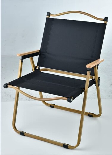 LANNY Portable Folding Camping Chair Fishing Camping Chair with Wooden Handle Aluminum Bracket Stable - Outdoor Picnic Chair For BBQ Beach Chair BLACK