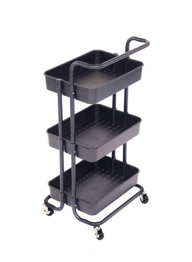 3 Tier Utility Rolling Storage Cart With Handles And Lockable Wheels Brown 43x36x86.5cm