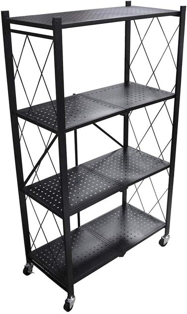 4 Tier Foldable Storage Shelf Unit with Wheel, Heavy Duty Storage Shelving Unit for Kitchen, Garage and Laundry Bathroom(black)