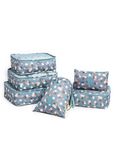 6 Piece Flower Print Storage Bag Set Blue/Pink/White
