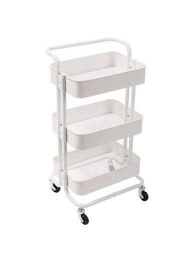 Almufarrej 3-Tier Rolling Shelves Metal Cart Organizer White 85X45X35cm