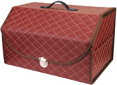Car Detachable Grocery Box Black Medium Holder Organizer Trunk Leather Made Placed in the Car Boot (red, middle(50 * 33 * 30cm))