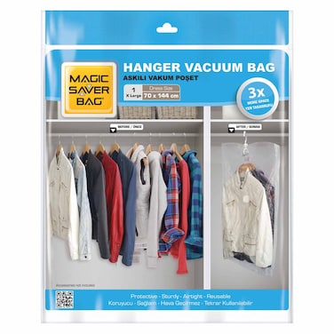 Whether you're looking to declutter your closet or pack for a trip, the Magic Saver Vacuum Hanger Bag Clear XL 70x144cm is a practical and efficient solution for organizing and storing your items.