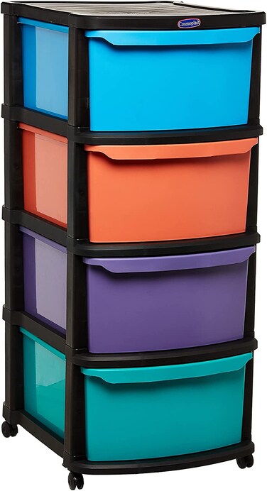 Cosmoplast Plastic Multipurpose 4 Drawer Storage Cabinet with Wheels
