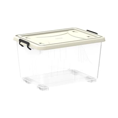 With a capacity of 33L, this clear plastic box allows you to easily see and access the contents inside. The built-in wheels make it easy to move the box around, while the sturdy construction ensures durability.