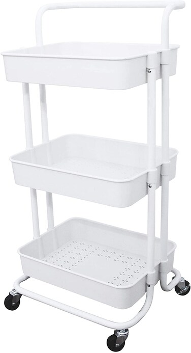 Generic Aewio 3-Tier Utility Rolling Cart Multifunction Storage Service Cart With Handle And Lockable Wheels For Kitchen Bathroom Office Laundry Room (White)