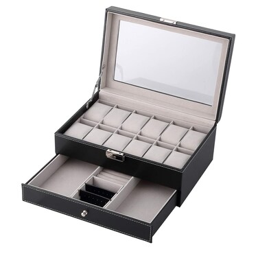 Generic-CK828 12 Slots Watch Case Watch Organizer with Jewelry Drawer for Storage and Display