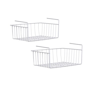 Generic-CK883 White Under Shelf Table Storage Basket Rack 2pcs