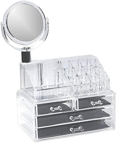 Generic - Cosmetic Makeup Organizer Rack With 3 Drawers And Mirror
