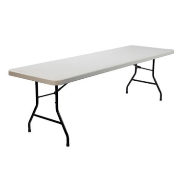 - DESCRIPTION<p>Material: Plastic with steel Legs<p>Full length: 1.8 meter<p>Outdoor and indoor use<p>Water proof<p>Style: Portable table / Folding with Handle<p>This Portable Folding Table is perfect whether it's for a party, picnic, camping, public event or a bit of DIY either indoors or outdoors.<p>When you're finished, it folds away for easy storage.<p>Dimensions: 183 cm x 76 cm x 70 cm<p>Color: White Indoor/Outdoor<p>Use: Yes Water Resistant:<p>Yes Adjustable Height:<p>No Seats Included:<p>No Product Weight: 14.5 kg Suitable for indoor or outdoor use Easy to Store